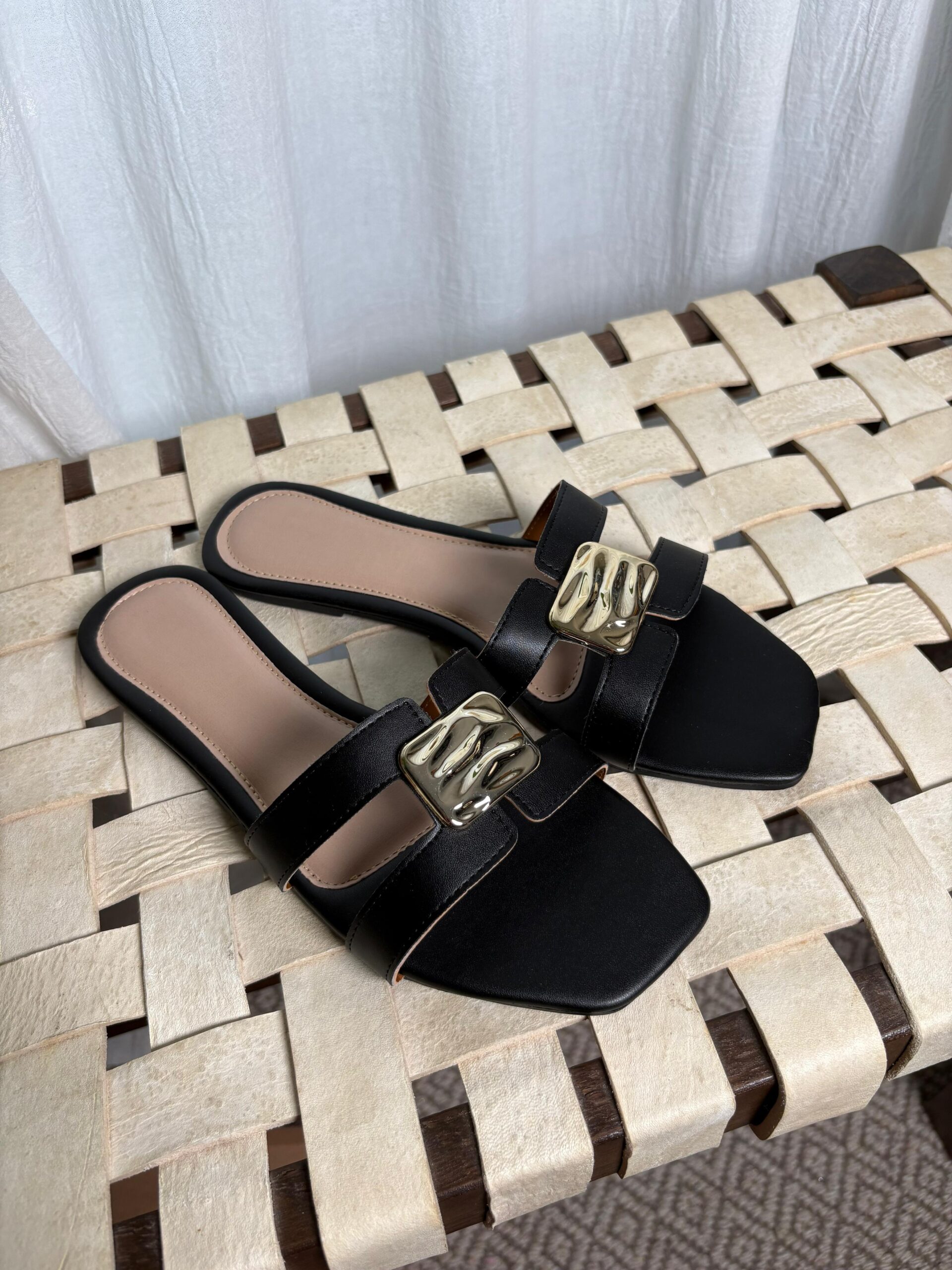 Sandalias Hermes con hebilla dorada🖤💛
